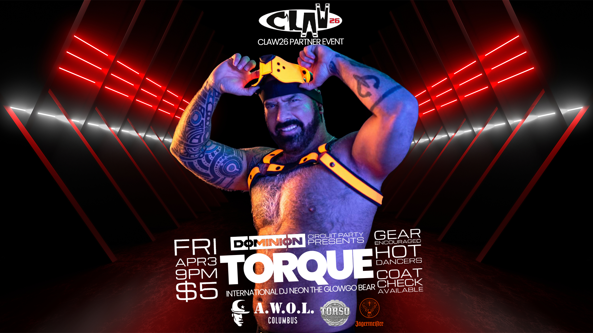 As part of the massive CLAW Leather Weekend, Dominion presents: TORQUE is hitting the floor at AWOL Bar on Friday, April 3rd. We are beyond stoked to announce that AWOL is an official partner of CLAW, making this the ultimate destination to kick off your weekend.